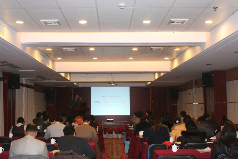 2011年1月14日上午,浙江大学医学部在紫金港大酒店召开了医学部2011年国际合作与交流工作会议。吴平副校长,外事处李敏副处长,薛飞副处长,袁纪纲副处长,国际教育学院徐为民副院长,教务处刘向东处长,雷群芳副处长,研究生院叶恭银处长,医学部罗建红常务副主任,陈智书记,黄河副主任等参加了会议。