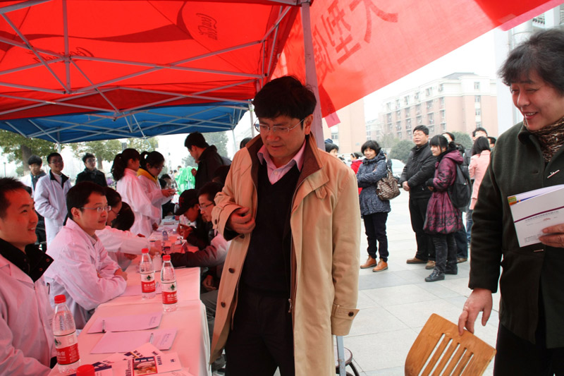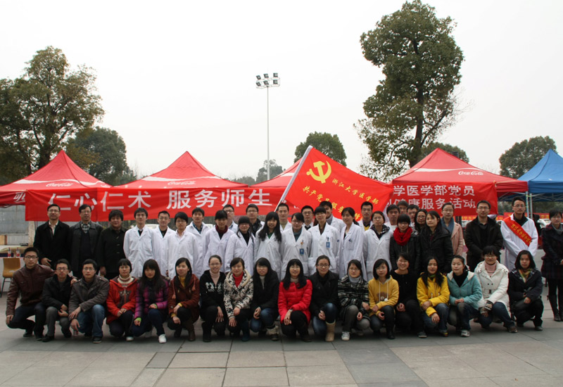 2011年3月5日上午11时,由浙江大学医学部党委主办,医学部紫金港学生党总支、医学部华家池学生党总支承办的“党旗下,我们医路同行”学生党员创先争优主题活动之“仁心仁术,服务师生”大型健康咨询活动在紫金港校区文化广场举行。来自医学部各学生党总支的60多名党员参加了咨询服务活动。医学部党委张小玲副书记、吴弘萍副书记也参加了此次咨询活动。