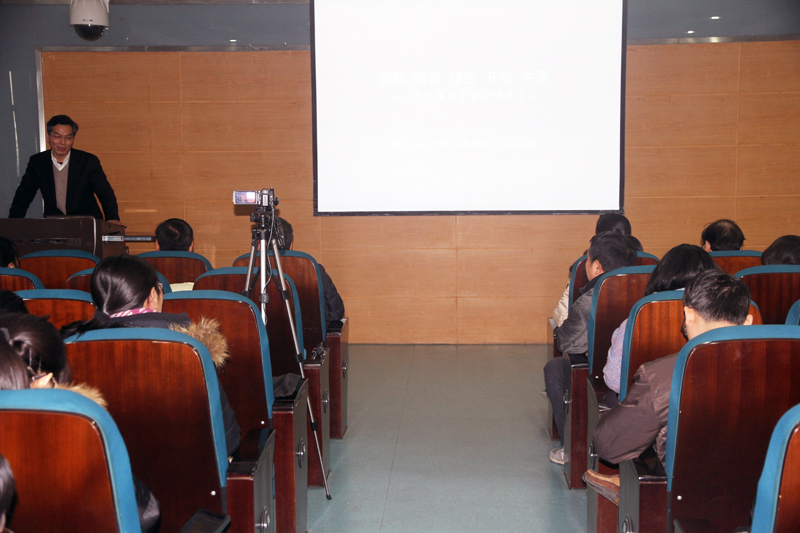 1218下午,医学院学习贯彻十八届五中全会精神报告会在医学院综合楼205会议室举行,学院特别邀请了浙江省人大常委会机关党组成员、研究室副主任张国强同志作为主讲嘉宾为学院党委中心组成员、全体管理干部、各支部书记、入党积极分子进行十八届五中全会精神解读。学校党委组织部副部长王志强、党委宣传部副部长李金林、药学院党委书记娄小娥及药学院部分管理干部也出席了报告会。报告会由学院党委副书记陈国忠主持。