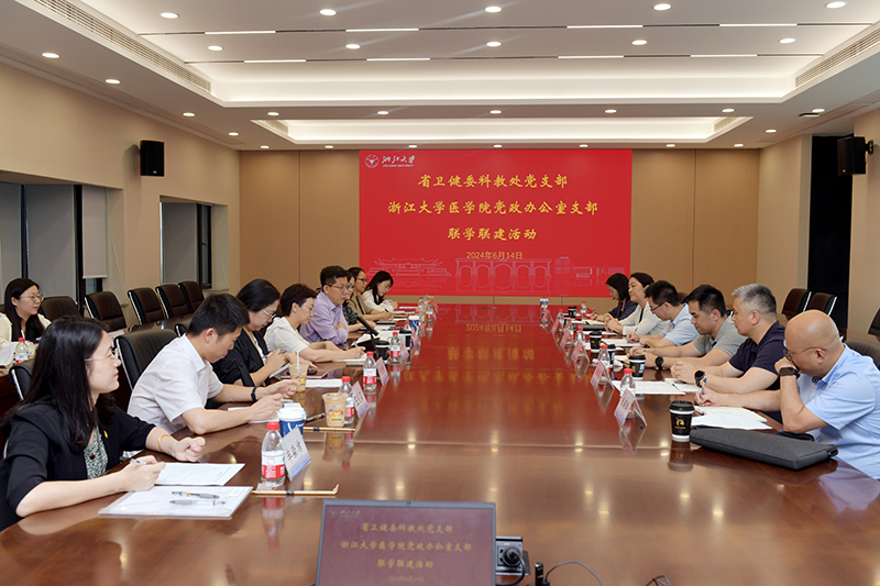6月14日下午,医学院党政办支部与浙江省卫生健康委员会科教处党支部开展联学联建活动。省卫健委科教处党支部书记、科教处处长王涌带领科教处一行参加活动。浙江大学党委常委、副校长兼医学院党委书记李晓明及医学院党政办支部党员参加座谈会,会议由医学院党政办支部书记、医学院党委副书记、纪委书记徐凌霄主持。